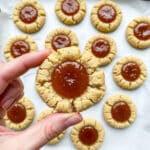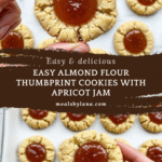 Delightfully tender and naturally gluten-free almond flour thumbprint cookies filled with sweet apricot jam. These buttery, melt-in-your-mouth treats are easy to make, requiring only a handful of simple ingredients and perfect for a light dessert or snack.