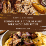 Keywords: apple cider pork shoulder, braised pork recipe, slow cooked pork, fall dinner recipe, comfort food