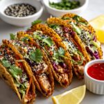 - Assemble Tacos: Fill each crispy wonton shell with a portion of the cooked chicken mixture. Top generously with the prepared coleslaw. Drizzle sweet chili sauce over the top and garnish with chopped cilantro and sesame seeds. Serve immediately and enjoy the perfect combination of crispy, savory, and fresh flavors.