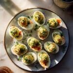 Store the deviled eggs in an airtight container in the refrigerator for up to 2 days. Fill the egg whites just before serving to keep them fresh. If stored filled, expect the texture to soften slightly. Reheat is not recommended—serve chilled or at room temperature.