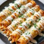 - Serve: Remove the taquitos from the oven, let cool slightly, then serve topped with chopped green onions and a dollop of sour cream for added flavor and creaminess.