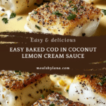 This baked cod in coconut lemon cream sauce is a quick and flavorful dish perfect for busy weeknights. Tender cod fillets are baked in a creamy, fragrant sauce that combines the tropical richness of coconut with zesty lemon notes.