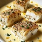 This baked cod in coconut lemon cream sauce is a quick and flavorful dish perfect for busy weeknights. Tender cod fillets are baked in a creamy, fragrant sauce that combines the tropical richness of coconut with zesty lemon notes.