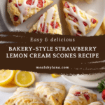 Keywords: Strawberry lemon scones, bakery scones, lemon cream scones, breakfast pastries, strawberry desserts