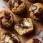These bakery-style vegan chocolate chip muffins are moist, tender, and full of rich chocolate flavor. Made with oat milk, vegan sour cream, and flaxseed meal, they offer a dairy-free and egg-free alternative that’s perfect for any occasion. The muffins have a perfectly soft crumb with a hint of cinnamon and nutmeg, topped with crunchy coarse sugar and melty dark chocolate chunks for a delightful finish.