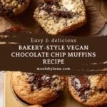 These bakery-style vegan chocolate chip muffins are tender, moist, and full of rich chocolate flavor. Perfect for breakfast or a sweet snack, they bring the homemade comfort of classic muffins without any animal products.