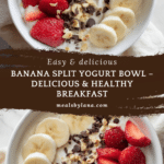 A playful and colorful Banana Split Yogurt Bowl that captures all the fun of a classic banana split without the ice cream. Perfect for a breakfast treat that’s both satisfying and nutritious, this recipe features creamy Greek yogurt topped with fresh banana slices, strawberries or crushed pineapple, chocolate chips, and chopped nuts. Optional additions like honey, maple syrup, or a drizzle of chocolate make it customizable and delightfully indulgent.