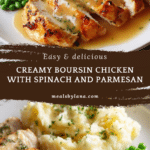 Boursin Chicken is a creamy, flavorful dish that’s surprisingly easy to make in under an hour. Tender chicken breasts are topped with a rich blend of Boursin cheese, garlic, and spinach, then baked with a crispy Parmesan and panko crust. It’s a perfect weeknight dinner that feels special enough for guests.