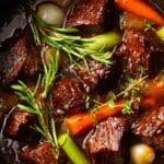- Deglaze with wine: Pour in the red wine, scraping the bottom of the pot to release any browned bits, bringing a deep flavor. Simmer and reduce the liquid by half, about 10 minutes.
