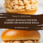 These Buffalo Chicken Sliders are a perfect combination of shredded rotisserie chicken tossed in spicy buffalo sauce and creamy Ranch dressing, layered with melted cheddar and mozzarella cheeses, all nestled inside soft, sweet Kings Hawaiian rolls. Baked until hot and golden, these sliders make a deliciously cheesy and flavorful appetizer or party snack that’s easy to prepare and sure to satisfy your craving for spicy comfort food.