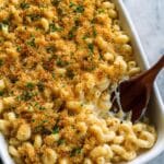 6. Serve: Mix half of the toasted panko into the mac and cheese. Transfer to a serving dish, then sprinkle the remaining panko on top along with fresh chopped chives for garnish. Serve warm.