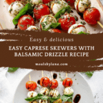 A simple and elegant Caprese Skewers recipe featuring marinated mini mozzarella balls, fresh cherry tomatoes, and basil leaves, drizzled with balsamic glaze for a delightful appetizer that’s perfect for any occasion.