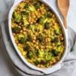 Keywords: broccoli rice casserole, vegan casserole, chickpea casserole, plant-based casserole, healthy casserole, gluten-free casserole, nutritional yeast recipes