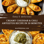 Antojitos are cheesy, flavorful tortilla rolls perfect for snacking or serving as an appetizer. With a creamy filling and a crispy baked exterior, these bite-sized treats are sure to please a crowd in just 30 minutes.