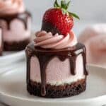 Delight in these decadent Chocolate-Covered Strawberry Mini Cakes, featuring rich chocolate layers infused with buttermilk and sour cream for moistness, topped with a luscious strawberry buttercream and finished with a glossy semi-sweet chocolate glaze and fresh strawberries. Perfect for celebrations or an indulgent treat.