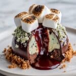 This delightful Chocolate Shell “Crack” Dessert features a crisp chocolate shell encasing a creamy vanilla ice cream filling mixed with crunchy cookies, nuts, and mini marshmallows. Perfect for a fun and indulgent treat, it combines smooth chocolate with textured, cool fillings to create a dessert that cracks open to reveal delicious surprises inside.