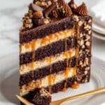 This decadent Chocolate Snickers Cake combines rich, moist cocoa layers with a luscious peanut caramel, creamy peanut butter buttercream, and a glossy chocolate ganache. Topped with chopped peanuts and mini Snickers bars, it’s an indulgent treat perfect for chocolate and peanut butter lovers.