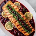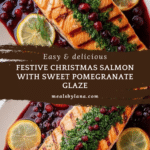 Keywords: Christmas salmon, pomegranate glaze, holiday salmon recipe, baked salmon, festive salmon, Atlantic salmon recipe