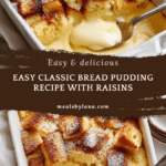 This comforting Bread Pudding recipe transforms day-old bread into a warm, custardy dessert, enhanced with cinnamon, vanilla, and optional raisins. Perfect for a cozy treat, it’s easy to prepare and baked to golden perfection.