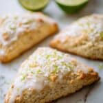 11. Glaze and Garnish: Drizzle the lime glaze over the cooled scones and sprinkle with toasted coconut if desired.