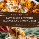 This comforting baked ziti combines hearty ground beef and Italian sausage with a rich, flavorful tomato sauce and creamy cheeses. It’s a perfect dish for family dinners or gatherings, offering warmth and satisfying layers of taste in every bite.