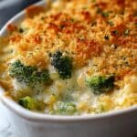 This creamy broccoli casserole is a comforting and cheesy baked dish featuring tender broccoli florets enveloped in a rich sauce made with cream of mushroom soup, sour cream, and cheddar cheese. Topped with a buttery crushed cracker crust and extra cheese, it’s an easy-to-make side perfect for family dinners or potlucks.