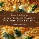 This creamy broccoli casserole is a comforting and cheesy side dish perfect for family dinners or holiday gatherings. With tender broccoli smothered in a rich sauce and topped with a buttery cracker crunch, it’s sure to be a crowd-pleaser.