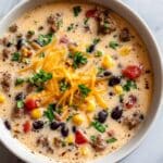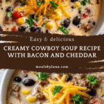 This Creamy Cowboy Soup is a hearty and comforting dish packed with ground beef, bacon, beans, and corn in a rich cheddar broth. Perfect for a satisfying one-pot dinner, it comes together quickly with just 15 minutes of prep and 30 minutes of cooking.