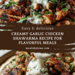 This Creamy Garlic Chicken Shawarma offers a flavorful twist on the classic Middle Eastern dish. Tender chicken marinated in aromatic spices is cooked to juicy perfection and topped with a rich, garlicky sauce. Wrapped in warm pita and fresh veggies, it makes an easy yet impressive meal for any day.