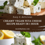 This creamy homemade vegan feta cheese is a delicious, plant-based alternative that perfectly mimics the tangy and crumbly profile of traditional feta. Made from pressed firm tofu and marinated in a savory blend of olive oil, lemon juice, red wine vinegar, nutritional yeast, and herbs, it’s ideal for enhancing salads, sandwiches, and vegan charcuterie boards. Easy to make and packed with flavor, this recipe will become a staple in your vegan cooking repertoire.