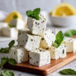 This creamy homemade vegan feta cheese is a delicious, plant-based alternative that perfectly mimics the tangy and crumbly profile of traditional feta. Made from pressed firm tofu and marinated in a savory blend of olive oil, lemon juice, red wine vinegar, nutritional yeast, and herbs, it’s ideal for enhancing salads, sandwiches, and vegan charcuterie boards. Easy to make and packed with flavor, this recipe will become a staple in your vegan cooking repertoire.
