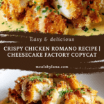 Crispy Copycat Cheesecake Factory Chicken Romano is a flavorful and crunchy dish that’s surprisingly easy to make at home. With a golden panko and Romano cheese coating, this chicken is perfect for a quick dinner that feels special.