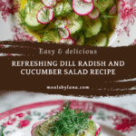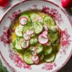 This Dewy Dill Delight Radish and Cucumber Salad is a refreshing and vibrant side dish perfect for warm days or a light snack. Featuring thinly sliced crisp cucumbers and radishes tossed in a tangy white wine vinegar and honey dressing, and brightened with fresh dill, this salad is quick to prepare and bursting with fresh flavors.