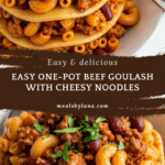 Keywords: beef goulash, ground beef recipe, goulash with noodles, easy beef dinner, one pot goulash