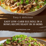 Keywords: egg roll in a bowl, low carb dinner, ground beef recipe, healthy Asian recipe, quick weeknight meal, one-pan dinner, gluten free, low carb, easy family meal