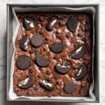 This easy fudgy Oreo brownie recipe combines rich, melted chocolate with chunks of crunchy Oreo cookies for a decadent dessert that’s perfect for chocolate lovers. With a simple mix of butter, chocolate chips, sugars, eggs, and cocoa powder, these brownies are moist and full of intense chocolate flavor, finished with crispy Oreo pieces baked right in and sprinkled on top for extra indulgence.
