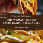 These Easy Smash Burger Tacos combine the crispy, juicy goodness of smash burgers with the convenience of soft tortillas. Ready in just 15 minutes, they make a perfect quick meal that’s full of flavor and texture.