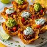 These easy taco cups combine savory ground beef and melty cheddar cheese baked inside crispy wonton wrappers. Perfect for appetizers or a fun twist on taco night, they’re ideal for parties or any time you want tacos in a handy finger food form.