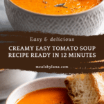 This easy tomato soup is a comforting and creamy dish that’s perfect for a quick lunch or dinner. Ready in just 12 minutes, it blends simple ingredients into a flavorful, satisfying bowl for the whole family.
