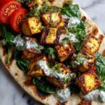 This Easy Vegan Tofu Souvlaki recipe offers a delicious and flavorful plant-based take on a classic Greek dish, perfect for quick weeknight meals. Firm tofu is marinated in a savory, tangy blend of vegan yogurt, lemon, herbs, and spices, then pan-seared until golden and crispy. Served with warm pita bread and creamy vegan tzatziki, it’s a satisfying and healthy vegan dinner option.
