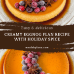 Keywords: eggnog flan, holiday dessert, caramel flan, custard dessert, baked flan, festive dessert, creamy custard