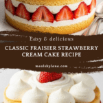 Fraisier is a classic French strawberry cream cake featuring layers of light sponge cake, smooth pastry cream, and fresh strawberries. This elegant dessert is assembled with a rich vanilla pastry cream, a moist sponge base, and decoratively arranged strawberries, making it perfect for special occasions or a sophisticated summer treat.