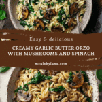 Keywords: garlic butter orzo, orzo with mushrooms, spinach orzo recipe, easy stovetop orzo, quick side dish, creamy orzo, parmesan orzo