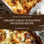 Keywords: scalloped potatoes, garlic potatoes, cheesy potatoes, baked potato casserole, creamy potato dish, holiday side dish