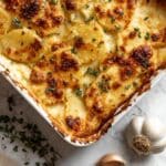 Garlic scalloped potatoes are a creamy, cheesy comfort food classic that’s perfect for any occasion. Thinly sliced potatoes baked with garlic, rich cream, and a blend of cheeses create a luscious side dish everyone will love.