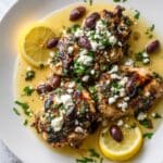 This Greek Chicken with Lemon and Feta is a flavorful Mediterranean-inspired dish featuring tender, marinated chicken breasts seared to golden perfection and baked with tangy feta cheese, Kalamata olives, and fresh herbs. The bright lemon juice and oregano bring vibrant freshness, making it a perfect easy dinner option that combines rich flavors and simple cooking techniques.
