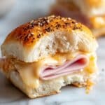Keywords: ham and cheese sliders, cheesy sliders, party sliders, football snacks, baked sliders, ham sandwiches, easy party food