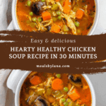 This healthy chicken soup is a comforting and flavorful dish that’s perfect for a quick weeknight meal. Packed with vegetables, aromatic spices, and tender chicken, it warms you from the inside out in just 30 minutes.