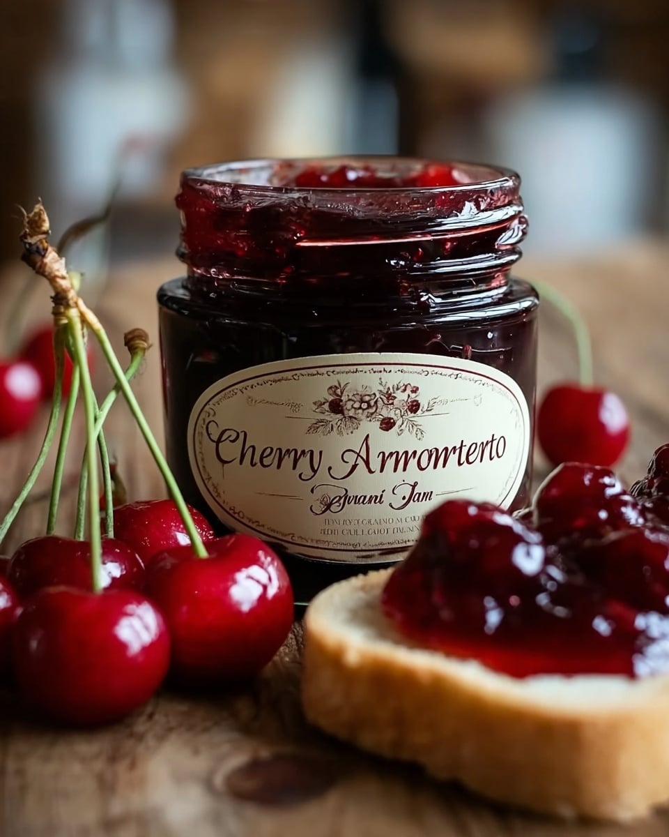 Keywords: Cherry jam, Amaretto jam, Homemade jam, Cherry preserves, Fruit spread, Gourmet jam
