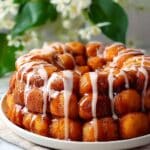 - Invert, Cool, and Glaze: Carefully invert the bundt pan onto a large plate to release the monkey bread. Let cool at least 10 minutes. Drizzle the reserved Pillsbury cinnamon roll glaze evenly over the top of the monkey bread before serving. Enjoy warm for the best gooey texture.